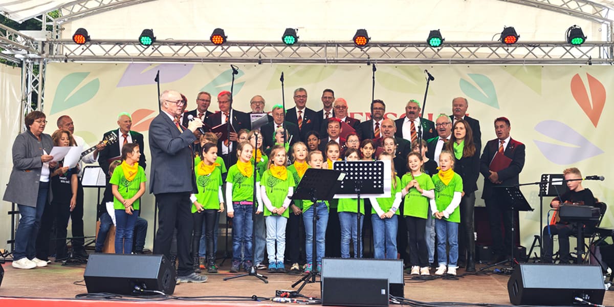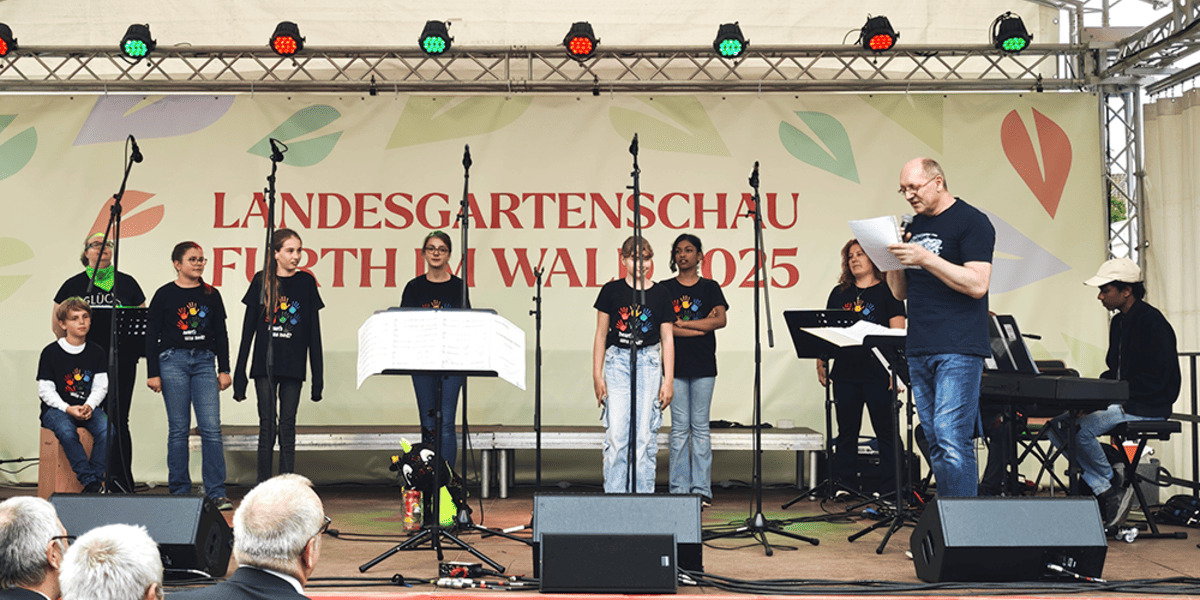 "heart´s uns ned?" gab zusammen mit dem MGV Wald und dem Kinderchor Wald-Zell ein gemeinsames Konzert auf der Hauptbühne der Landesgartenschau. Mit herzlicher Begrüßung und viel Charme führte Chorleiter Rudi Zimmerer, der auch die Organisation übernommen hatte, durch das Programm. Seine humorvollen Sprüche lockerten die Atmosphäre und sorgten für heitere Momente. Auch die Bürgermeisterin der Gemeinde Wald hieß die Zuhörer willkommen und stellte die Gemeinde in einem kurzen, persönlichen Grußwort vor.